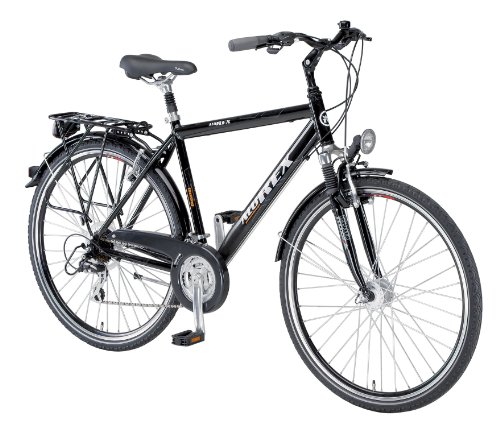 Alu-REX Herren Trekking-rad 24-Gang Kettenschaltung Nabendynamo, glanzschwarz, 28", 52 cm ist ein Mix aus Mountainbike und Rennrad, das sowohl auf der Straße, als auch in leichtem Gelände eingesetzt werden kann. Der dünne Rahmen wie auch die großen Reifen erinnern an ein Rennrad; die Ausstattung ähnelt dem